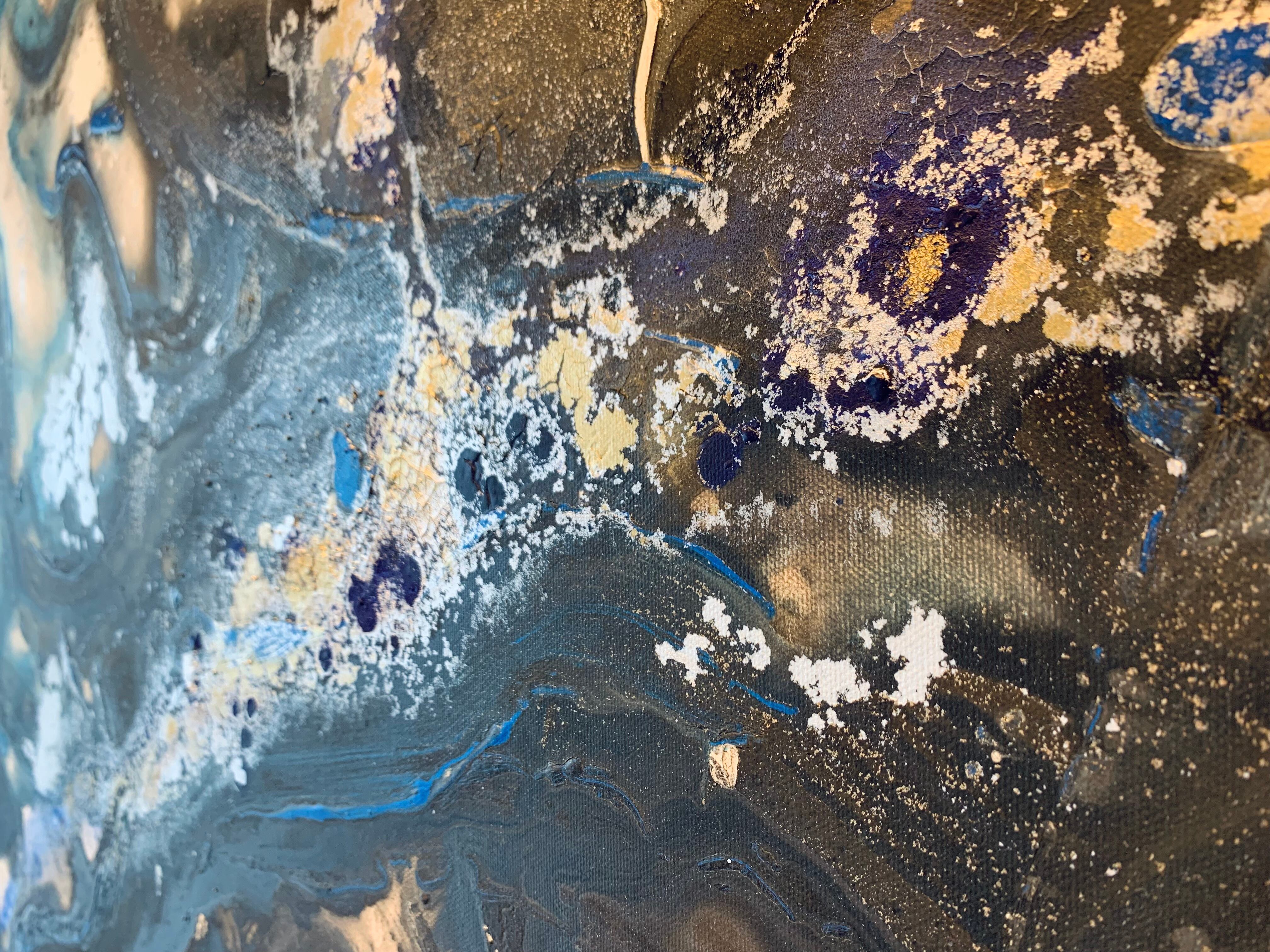 鮮烈な蒼に浮かぶ極彩色の抽象